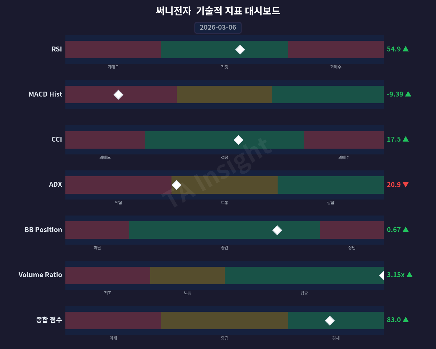 써니전자(004770) 주식 시장에서 최근 외국인의 순매수세와 함께 거래량이 크게 증가하고 있습니다. 특히, Parabolic SAR 및 Supertrend 지표들이 상향으로 전환되었다는 점은 긍정적인 변화를 보여줍니다.