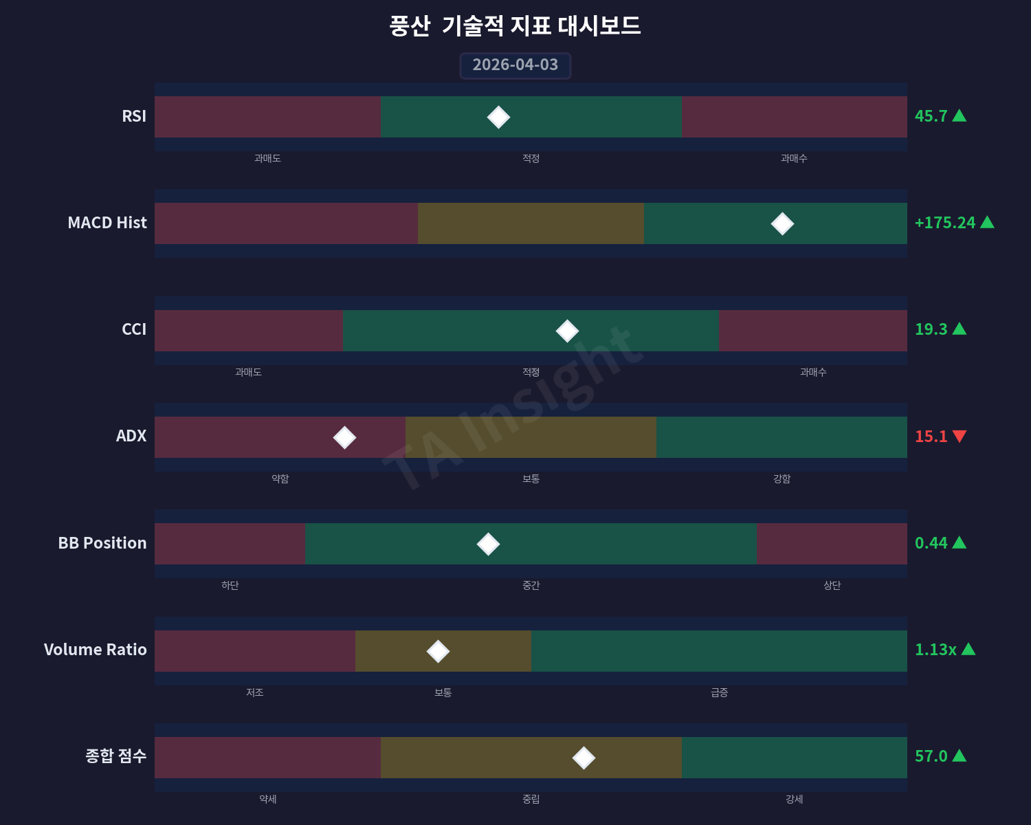 단, MACD 추세 전환 이벤트는 상향으로 변화했지만 신호 강도가 약하고 다른 기술적 지표들의 움직임과 비교하면 뚜렷한 방향성을 보여주지 않습니다.