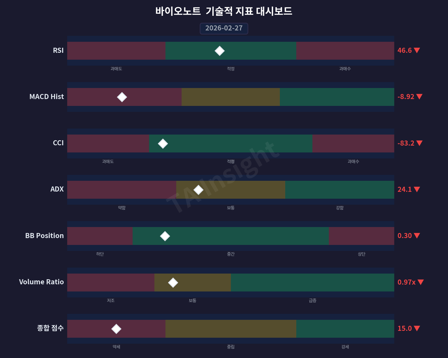 바이오노트의 최근 20일간 가격은 변동폭이 적게 나타났으며, 거래량 증가 추세를 보이고 있습니다. RSI 지표는 중립적인 수준을 유지하고 있으며 MACD는 상승 추세를 이어나가고 있습니다.