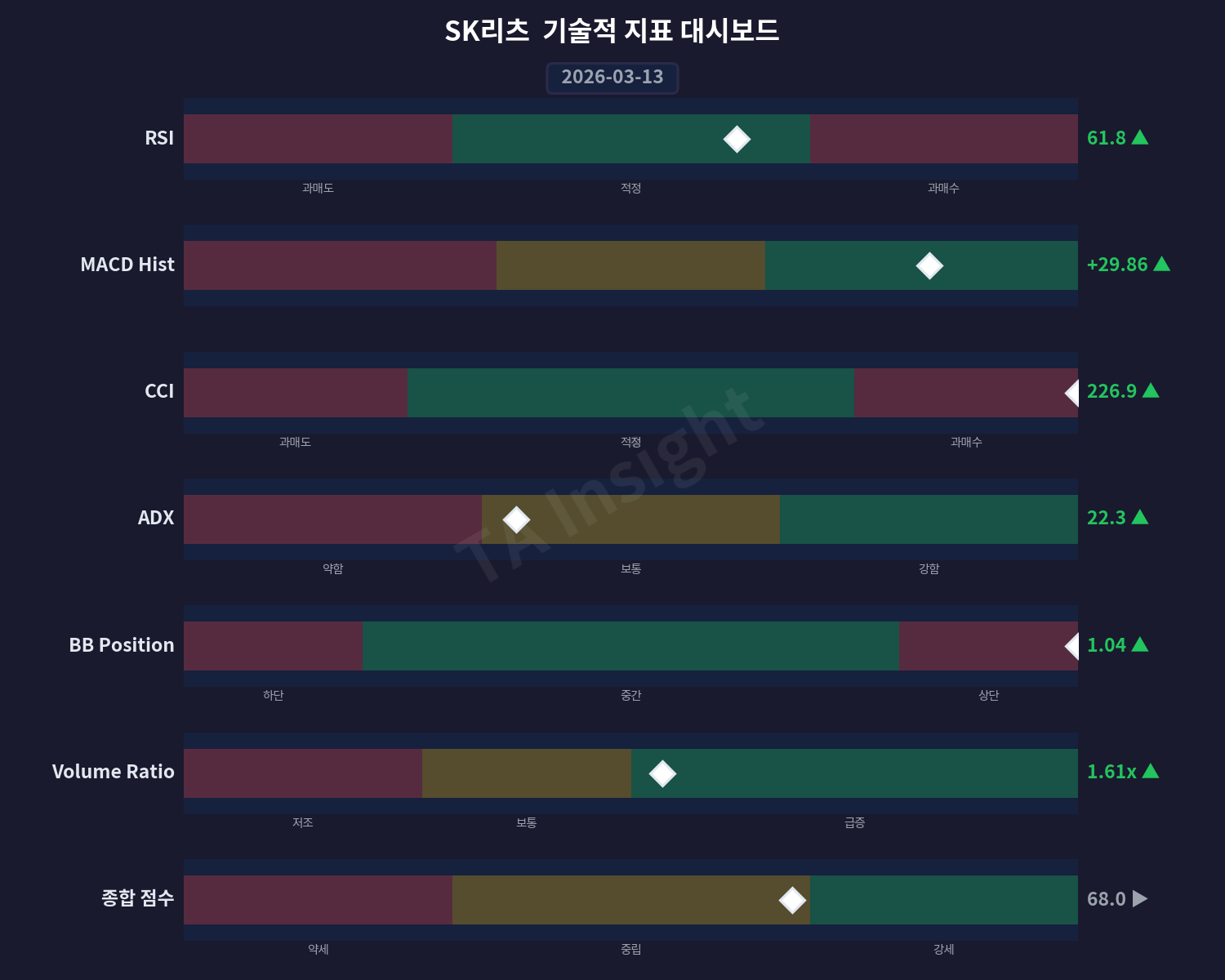 최근 가격 상승과 거래량 증가, 그리고 기관의 지속적인 매수는 SK리츠 주식에 대한 시장적 관심이 높아지고 있음을 나타내는 것으로 해석될 수 있습니다.