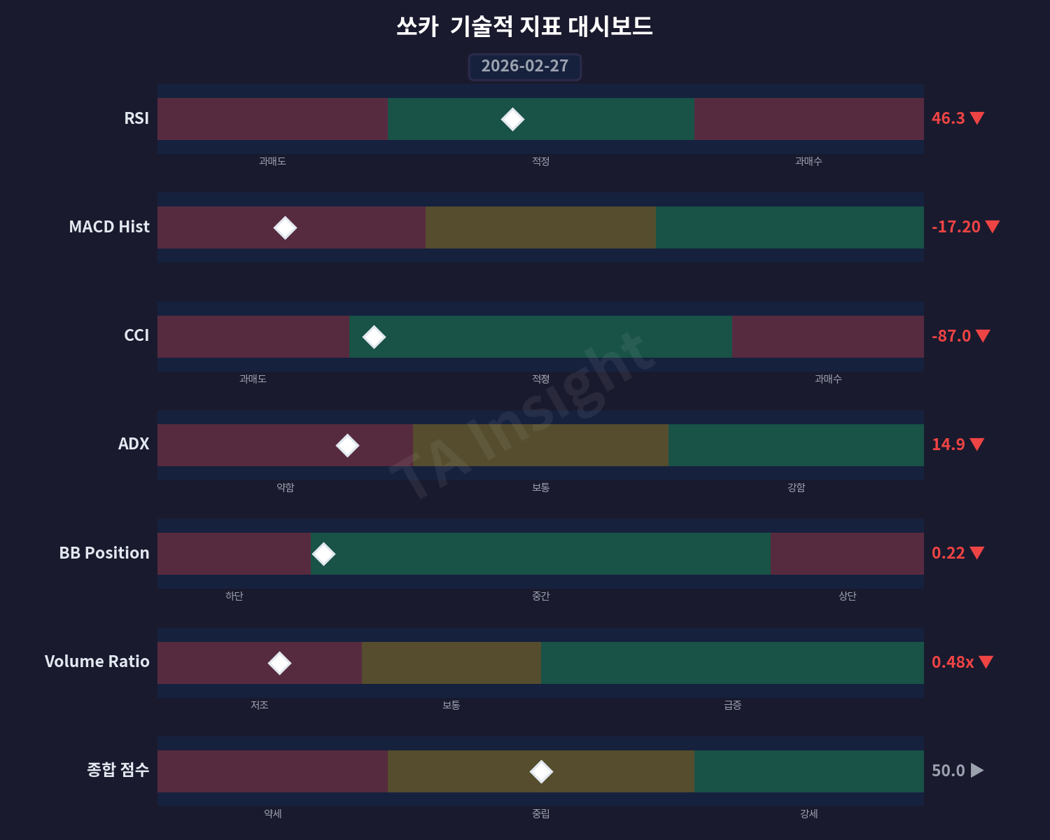 RSI 지표값은 43.62를 기록하며 하락하는 경향을 나타내고 있지만, MACD 지표는 상승 추세를 유지하고 있습니다. 이러한 기술적 지표의 조합은 시장에 대한 다양한 의견이 존재함을 보여줍니다.