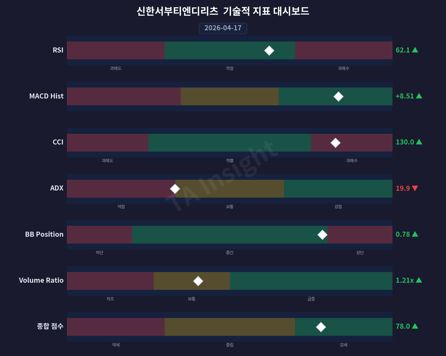 최근 5일간 외국인과 기관 모두 순매수세를 보이고 있어 투자 심리가 양호한 상태입니다. 이러한 거래 데이터는 신한서부티엔디리츠(404990) 주가 상승에 대한 지지를 강화하는 요소로 작용할 수 있습니다.