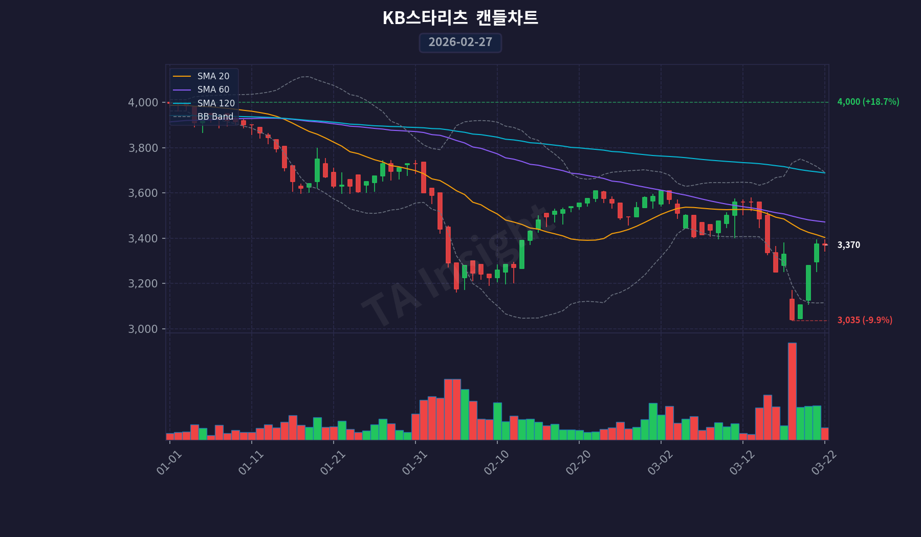 KB스타리츠(432320)의 최근 주가는 하락세를 보이며, 지난 20일 동안 약 -5.3% 감소했습니다.